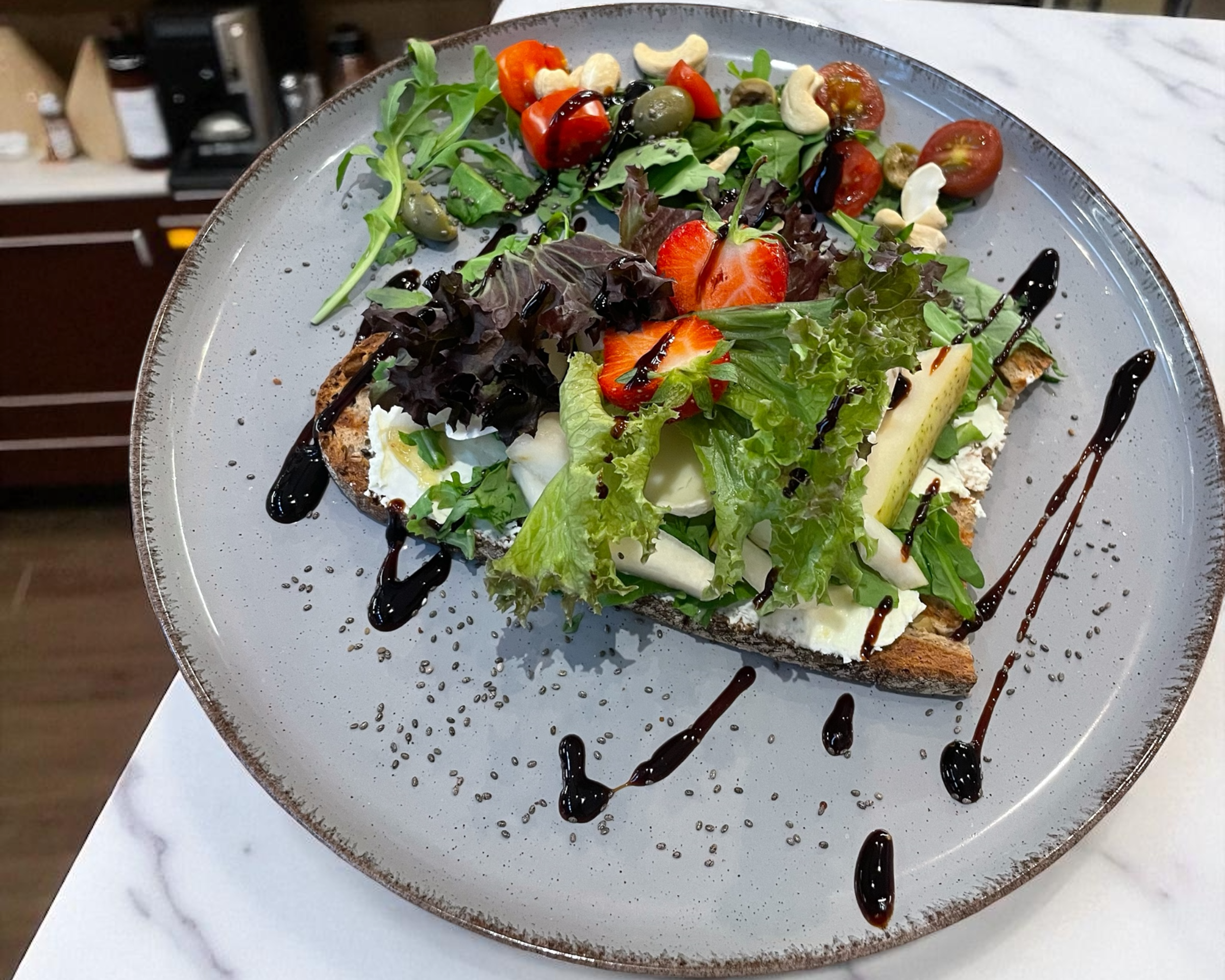 Selbstgekochte Suppen, saisonale Pausenbrote, Quiche und Pitas.