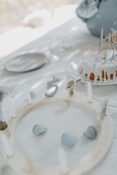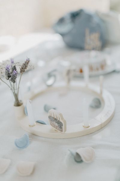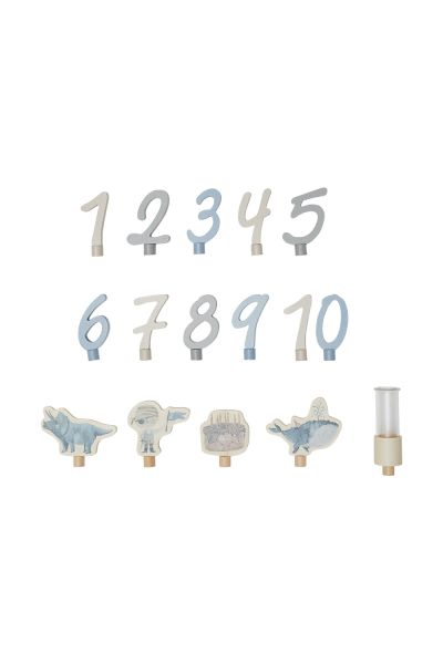 Zusatzset für Geburtstagskranz mit Zahlen, 4 illustrierten Motiven und Glasvase