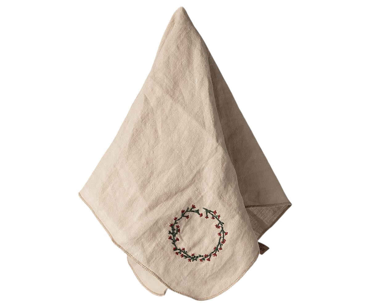 Zu jedem festlich gedeckten Weihnachtstisch gehören besondere Servietten. Diese Serviette aus weichem Leinen besticht durch eine liebevoll gestickte Illustration, die von Dorthe Mailil handgezeichnet wurde. Mit einer Größe von 44 x 44 cm ist sie perfekt für festliche Anlässe.